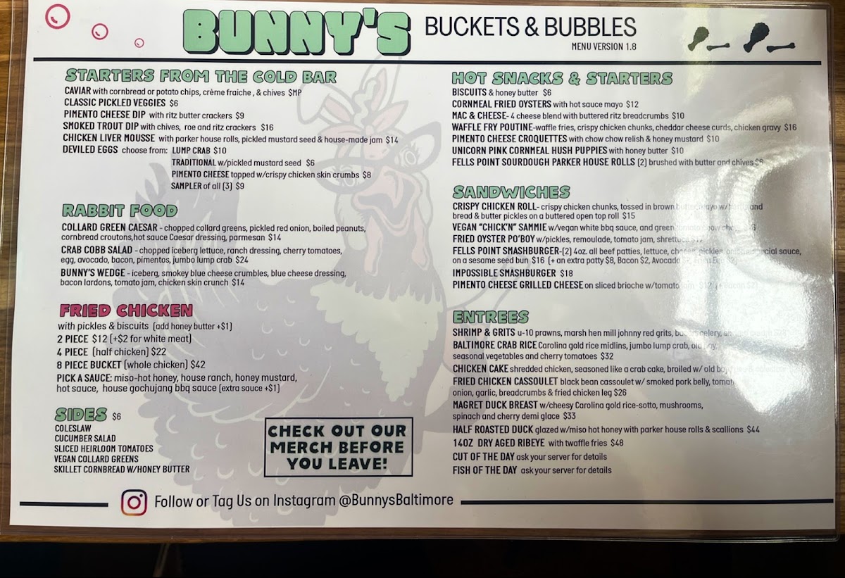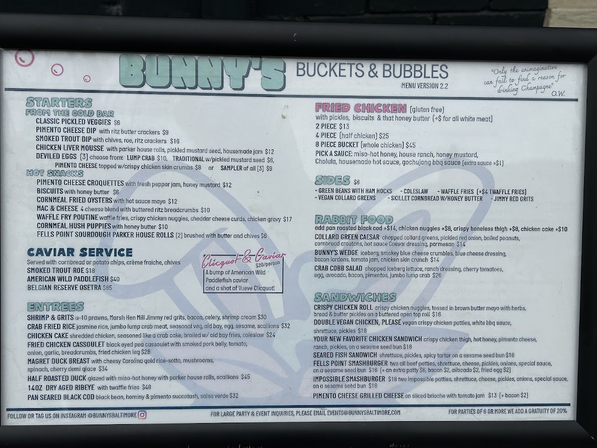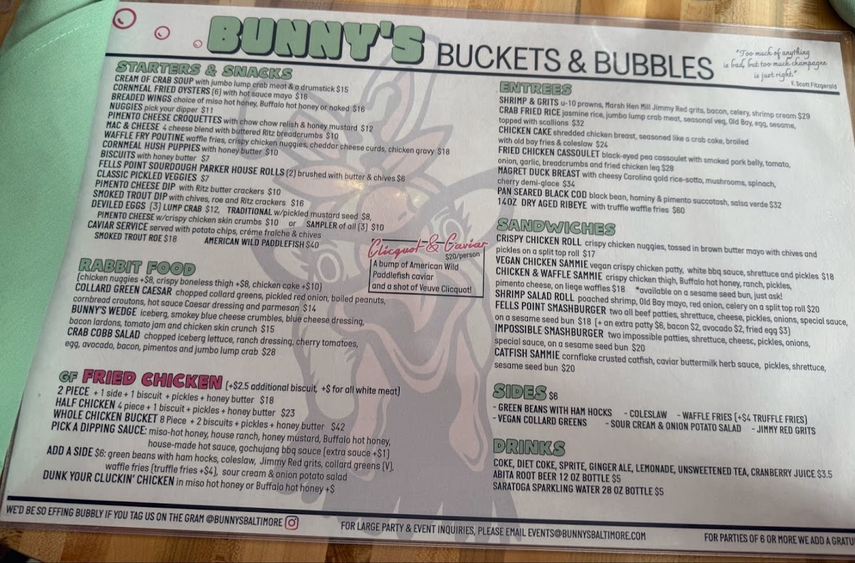 Whether you're a local or just passing through, Bunny’s Buckets & Bubbles is a must-visit destination that adds a dash of joy and flavor to your Baltimore adventure. Head on over to 801 S Ann St where delightful dishes and enchanting vibes await!